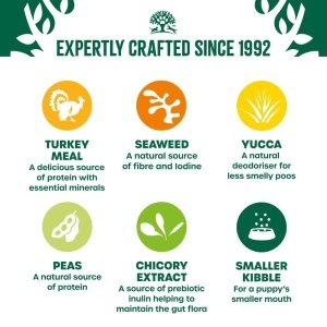 - With natural prebiotics & fibres for a growing dog’s healthy digestion