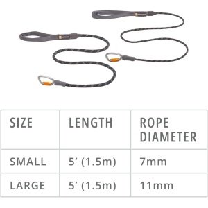 Details: The Knot-a-Leash dog lead is a classic 1.5m climbing-inspired short dog leash that takes design and durability cues from the crag to create a strong connection with your canine. With supple, reflective kernmantle rope, a comfortable tubular webbing handle, and an auto-locking carabiner, it’s the leash that’ll go the distance from the epic to the everyday. The tri-action carabiner not only creates a secure connection, but it also swivels to create a twist- and tangle-free experience. Complete the kit with the matching Knot-a-Collar dog collar (sold separately). Part of our range of premium dog accessories and dog clothes for all year round. Ruffwear Knot-a-Leash black dog lead – 1.5m (5ft), Obsidian Strong, secure leash connection with a tri-action auto-locking carabiner: lift, twist, open, go Swiveling carabiner keeps leash twist and tangle free Soft and comfortable tubular webbing handle Strong, supple, no tangle reflective kernmantle rope (7mm diameter) Rope core made of repurposed yarns Convenient accessory loop on handle Discover our range of dog walking accessories, including retractable dog leads, hands free dog leads, figure of 8 dog leads, double dog leads, extendable dog lead cords and waist belts (sold separately).