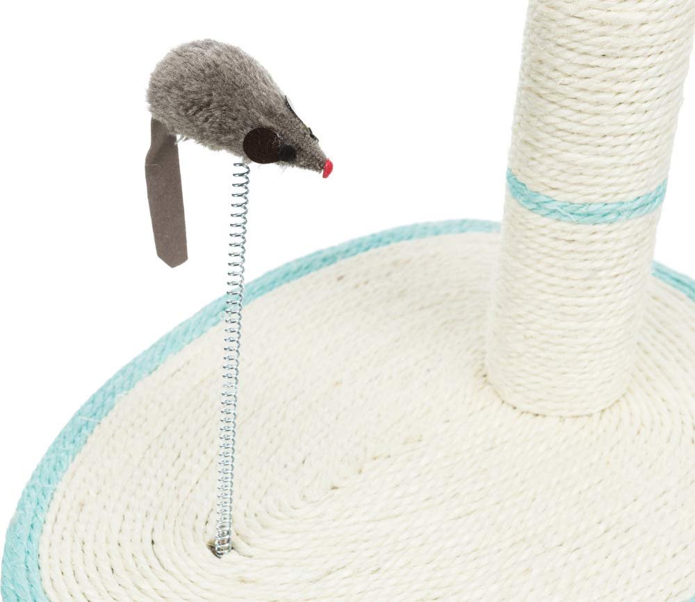 Trixie scratch me scratching post for house cats. It is completely wrapped in natural sisal. Rotatable pole with toy on string. House cats that love to scratch. Scratching boards are small simple solutions if there is no room for larger scratching furniture. Floor Measures 40 cm length by 30 cm width. Post diameter: 7 cm. Height: 50 cm.